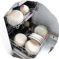 De vaat is heel proper en je merkt dat er geen laagje achter gebleven is. De vaat voelt 'zachter'.